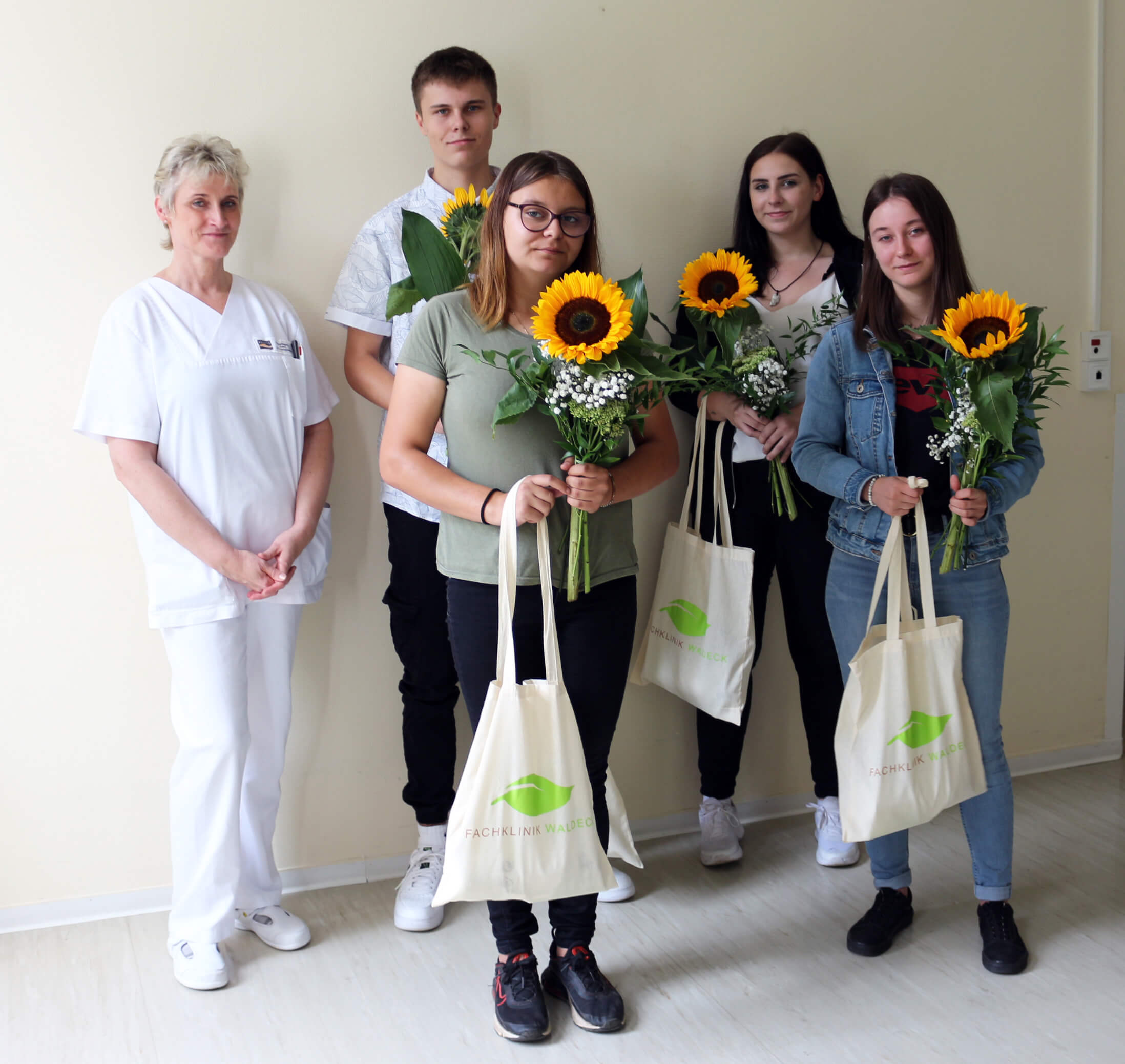 Alles hat seine Zeit, so auch die Ausbildung. Mitte Juli hielten Auszubildende der Neurokliniken Waldeck stolz ihr Abschlusszeugnis in den Händen. Fünf Auszubildende bestanden erfolgreich alle Prüfungen zur/zum examinierten Gesundheits- und Krankenpfleger*in. Ein großes Dankeschön ging an die Praxisanleiter*innen und Pflegekräfte der Klinik, die mit viel Engagement und noch mehr Geduld die praktische Ausbildung begleiteten. Die Zeugnisübergabe mit anschließender Feierstunde fand im Bürgerhaus Güstrow statt.