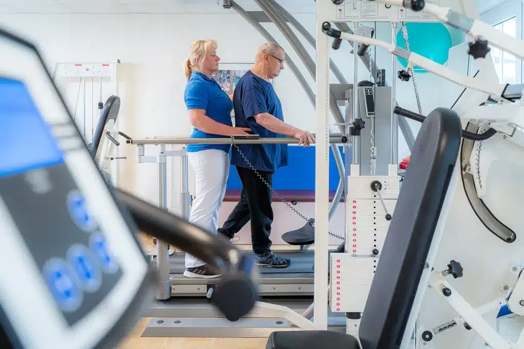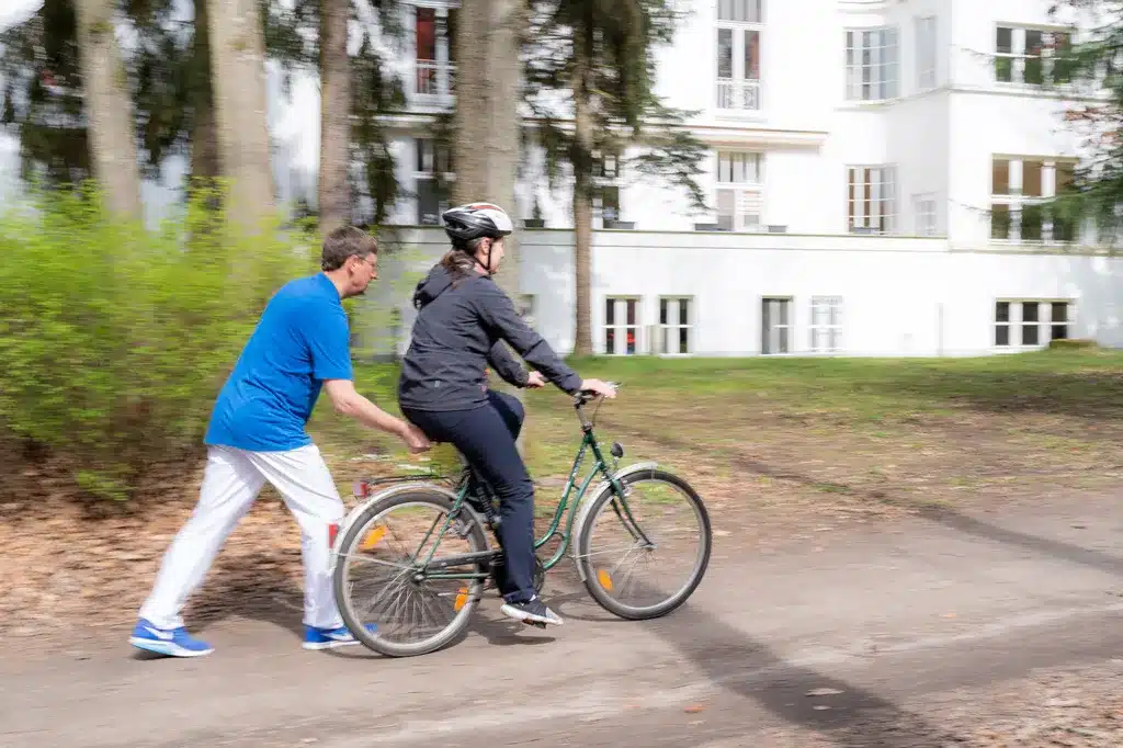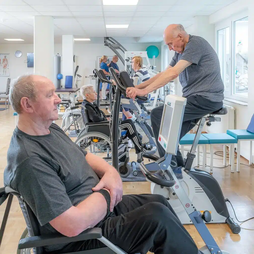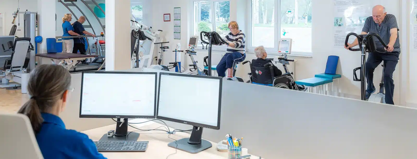 Zur Minderung muskulärer Dysbalancen setzen wir vorrangig die Medizinische Trainingstherapie ein. In enger Zusammenarbeit mit der Physiotherapie fördert die Sporttherapie motorische Lernprozesse, insbesondere das Wiedererlernen des Gehens, unterstützt durch bildgebende Diagnostik (Videofeedback, Ganganalyse) und moderne Geräte zum repetitiven Üben wie Gangtrainer und Laufband. Dabei spielt auch die Schulung koordinativer Fähigkeiten, vor allem der Gleichgewichtsfähigkeit, eine wichtige Rolle.