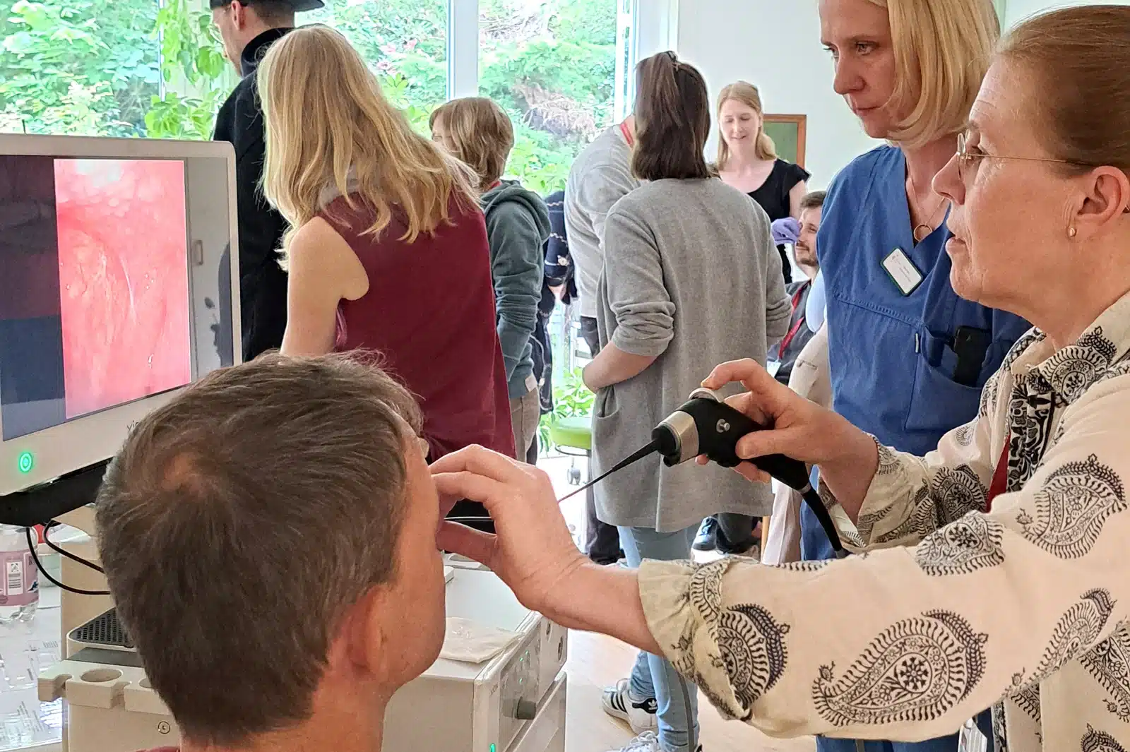 Aus diesen Gründen nimmt die fiberendoskopische Schluckuntersuchung (FEES) eine elementare Rolle in der objektiven Diagnostik, Therapie und Verlaufskontrolle von Schluckstörungen ein. Die FEES ist ein nicht-invasives Verfahren und wird interdisziplinär von Ärzt:innen und Logopäd:innen durchgeführt. Über ein dünnes flexibles Endoskop werden während der Untersuchung der Schluckakt ohne und mit Nahrung und Flüssigkeiten verschiedener Konsistenzen beurteilt.