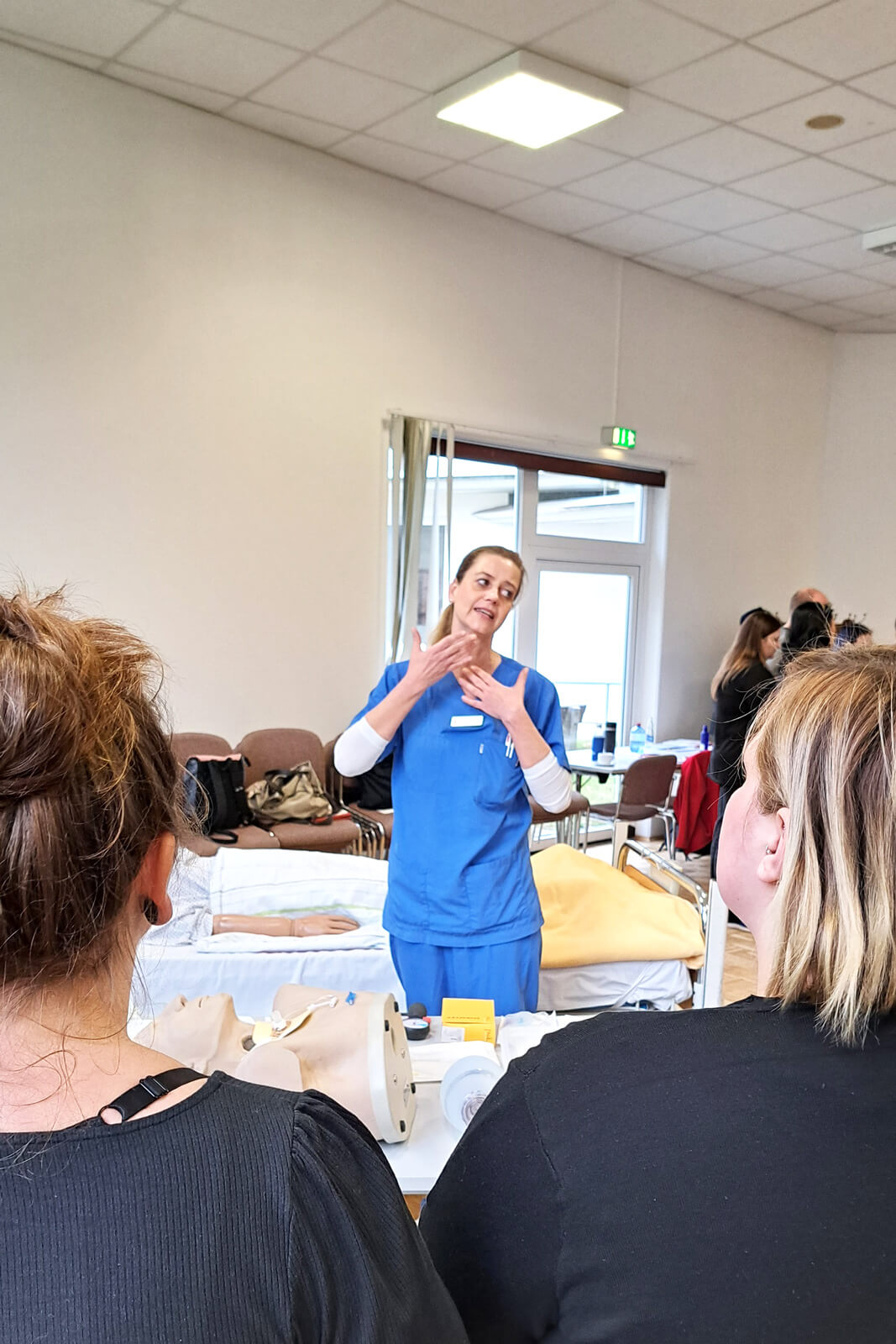 Nach einem informativen theoretischen Teil schließt sich ein praktischer Teil an, in dem mit praktischen Unterweisungen und Vorführungen der Umgang mit Trachealkanülen am Modell demonstriert und anschließend geübt wird. Dabei werden die Teilnehmenden den Kanülenwechsel, die Tracheostomapflege, den Umgang mit zweiteiligen Phonationskanülen und das Beherrschen von Komplikationen und Notfällen bei tracheotomierten Menschen unter Supervision selbst durchführen.