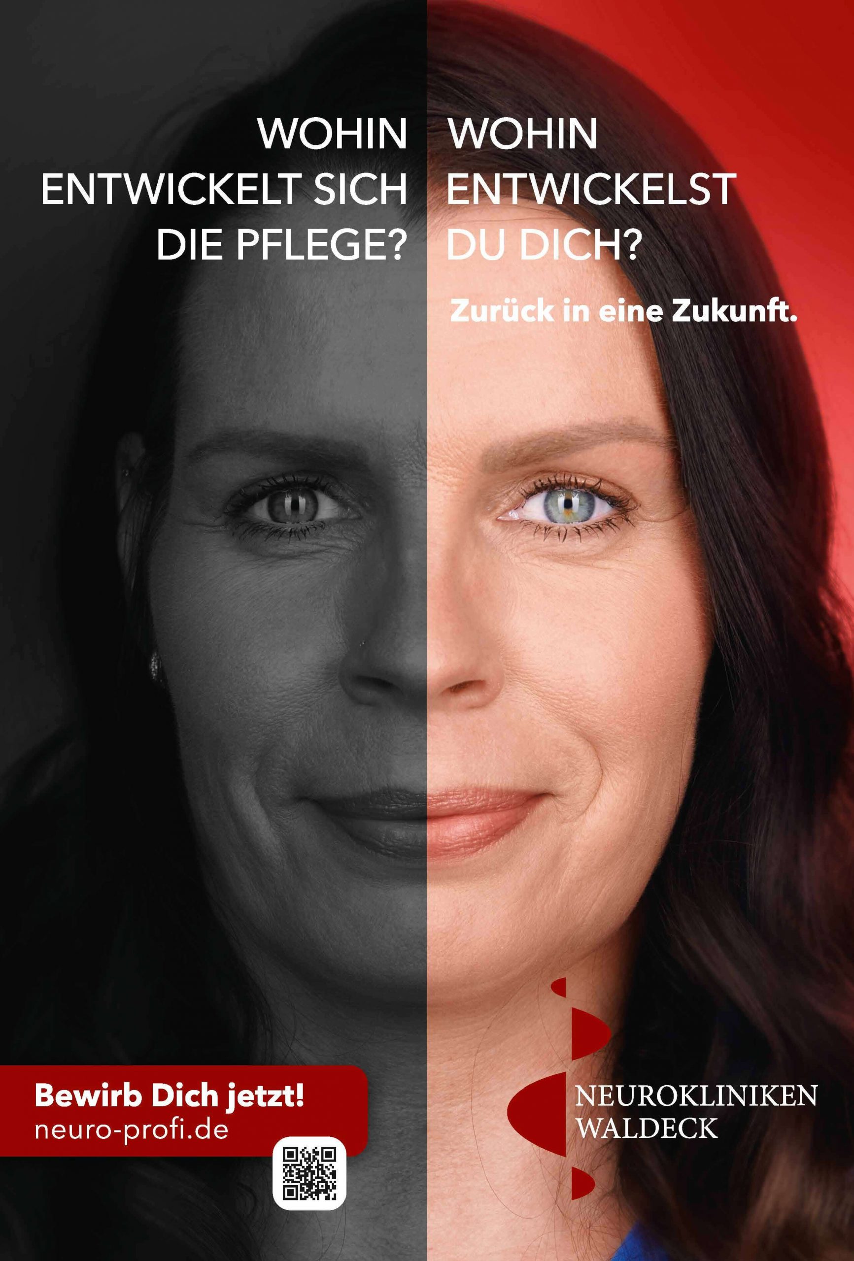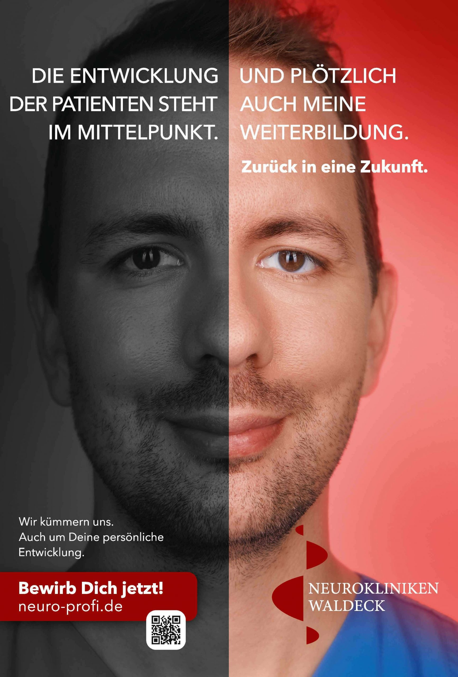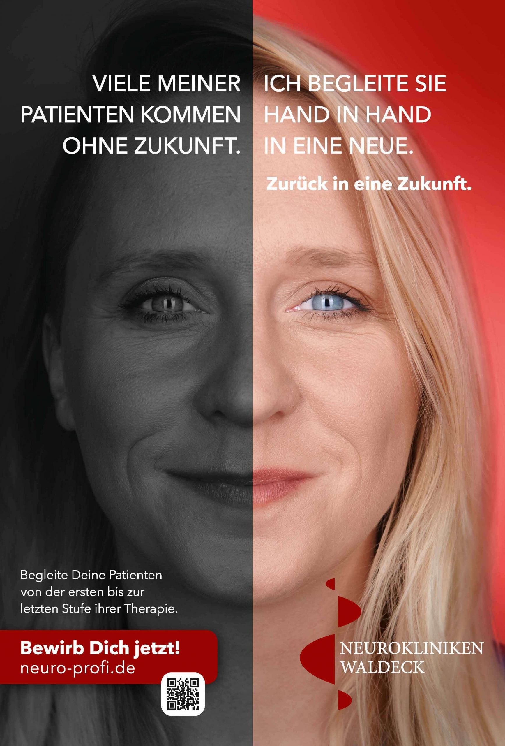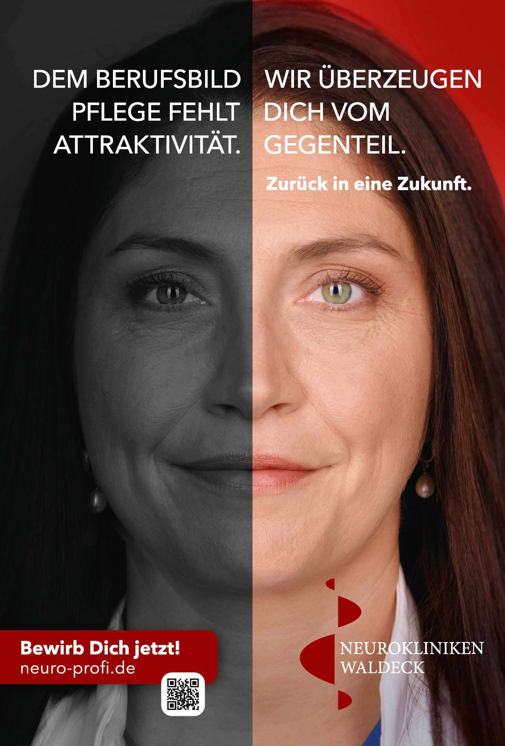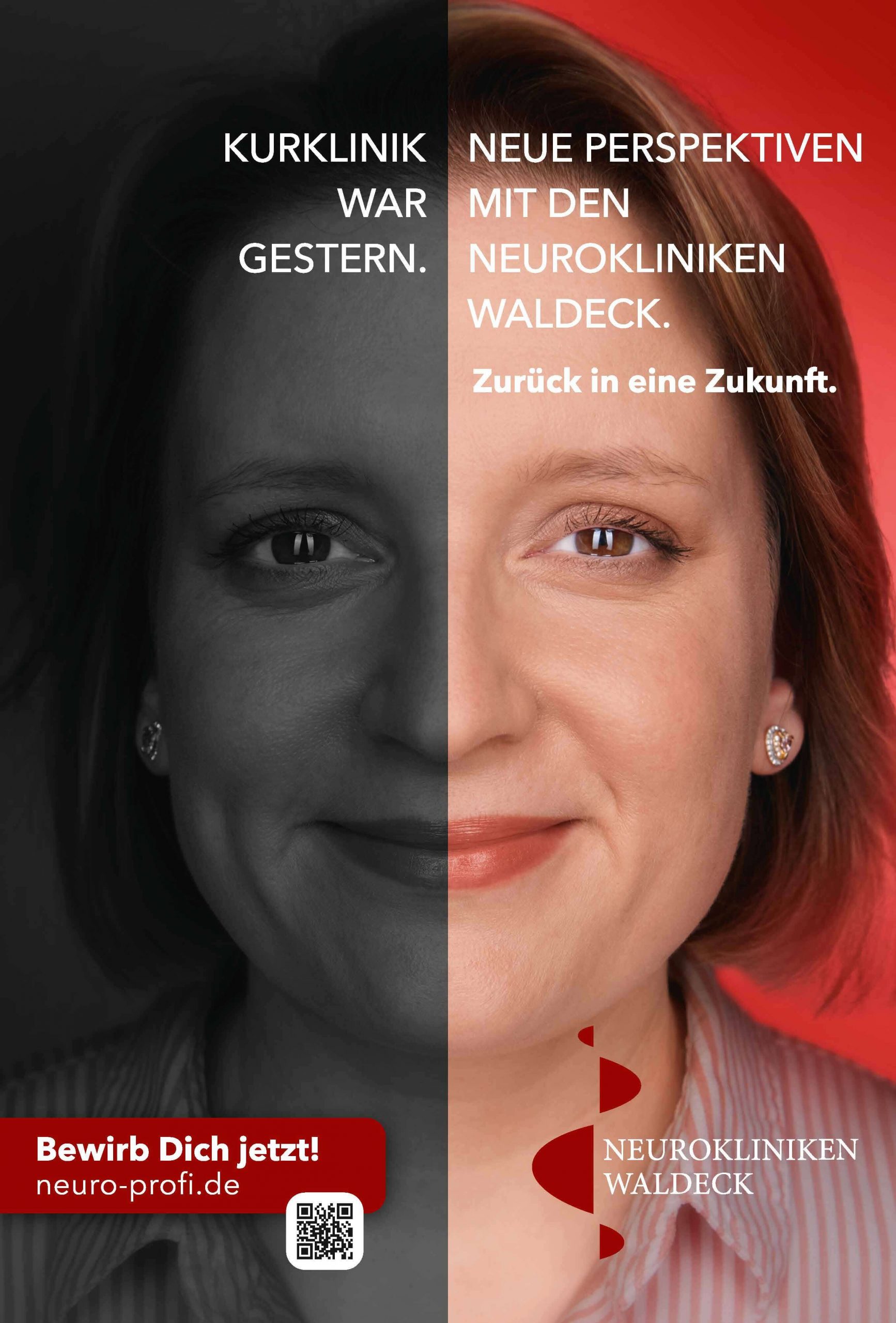 „Neuer Name. Neue Zukunft.“ Damit einhergehend starten die Neurokliniken Waldeck mit einer großangelegten Employer Branding Kampagne, die die Gesichter von Mitarbeiter:innen zeigt. Neun Angestellte aus der Pflege, Ergotherapie, Verwaltung und dem Ärzteteam haben sich frontal ablichten lassen. Herausgekommen sind tolle Motive in Verbindung mit ausdrucksstarken Aussagen über die Neurokliniken Waldeck.